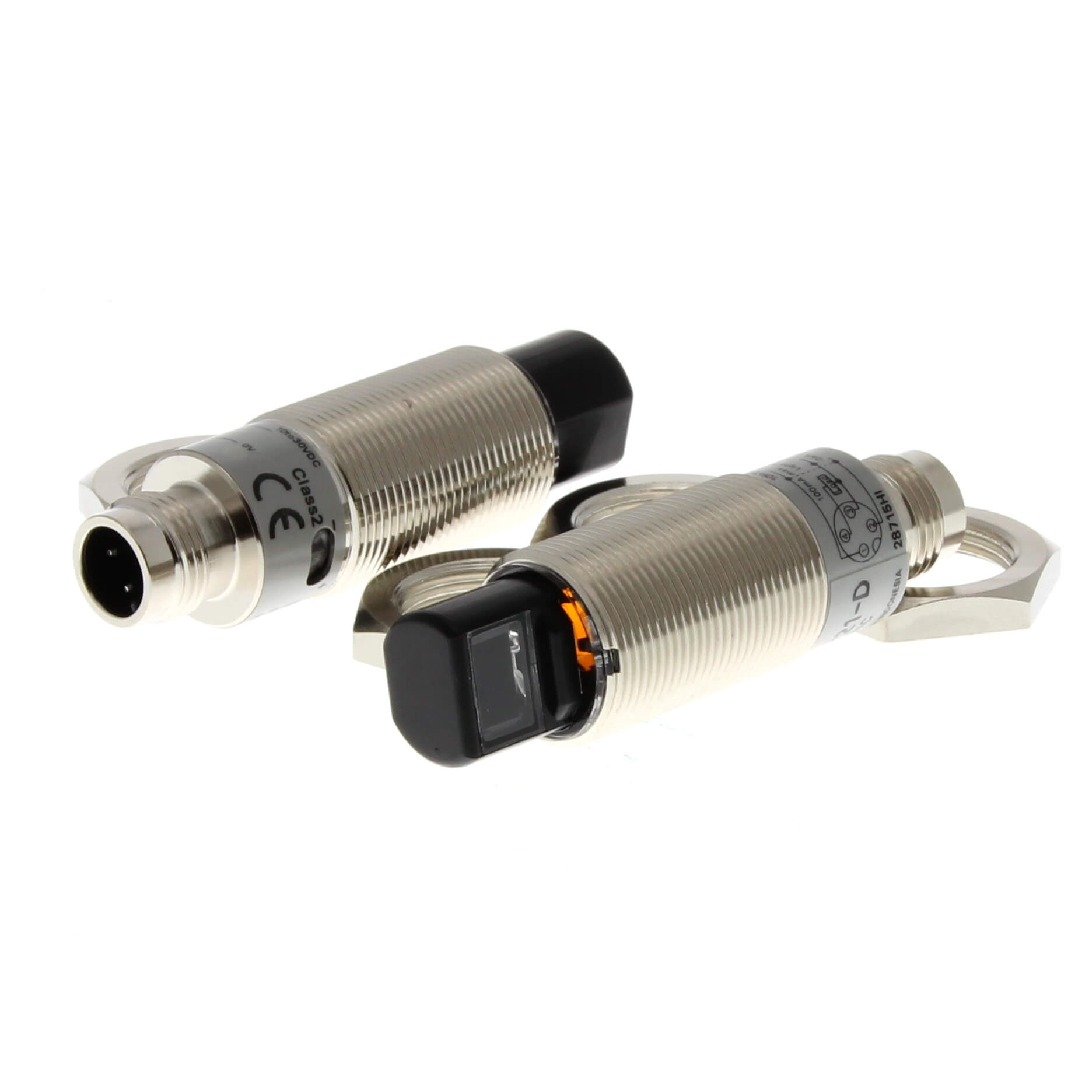 Photoelectric sensor, M18 threaded barrel, radial type, metal, red LED, through-beam, 15 m, PNP, Light-ON/Dark-ON, M12 connector